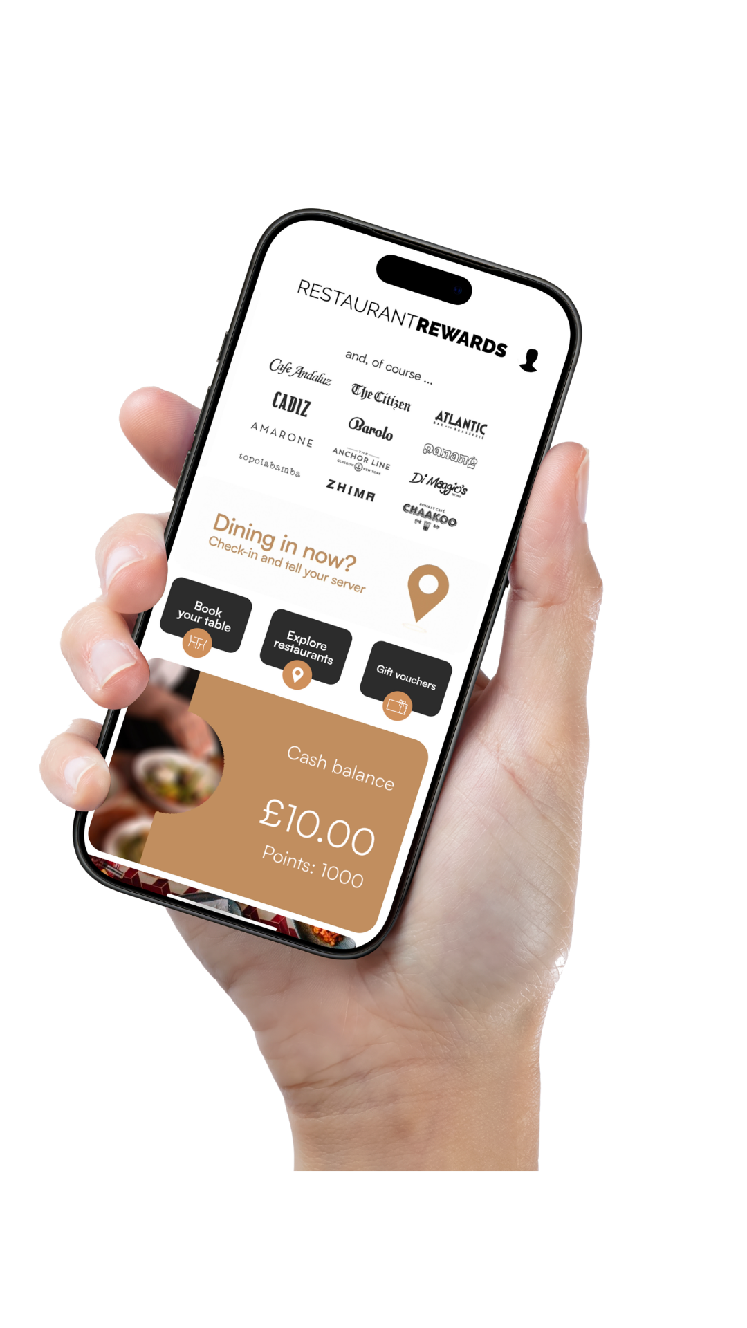 Sign up to Restaurant Rewards and every time you dine, we’ll give you 5% back on your food bill in points.